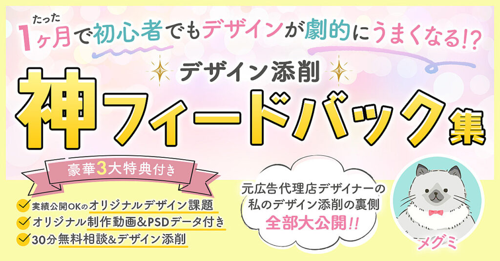 具体的にデザインの実例を拝見できて、初心者さんがありがちなデザインのミスやNGデザイン例の解説を見ることが出来ます!